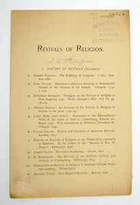 48 books and 11 pamphlets on Revivals of Religion, compiled by A. C. Thompson of the Hartford Theological Seminary.