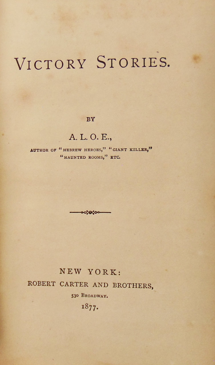A.L.O.E.; [Tucker, Charlotte Maria]. Victory Stories. New York: Robert Carter and Brothers, 1877. [11863]