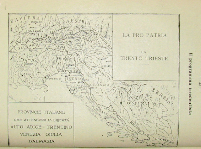 Patterned paper over boards, black leather spine title label, original wrappers bound in, 24 x 17 cm, 358 clean pp., maps & illustrations, floral end papers. Italian text. Very good. Hardcover.
