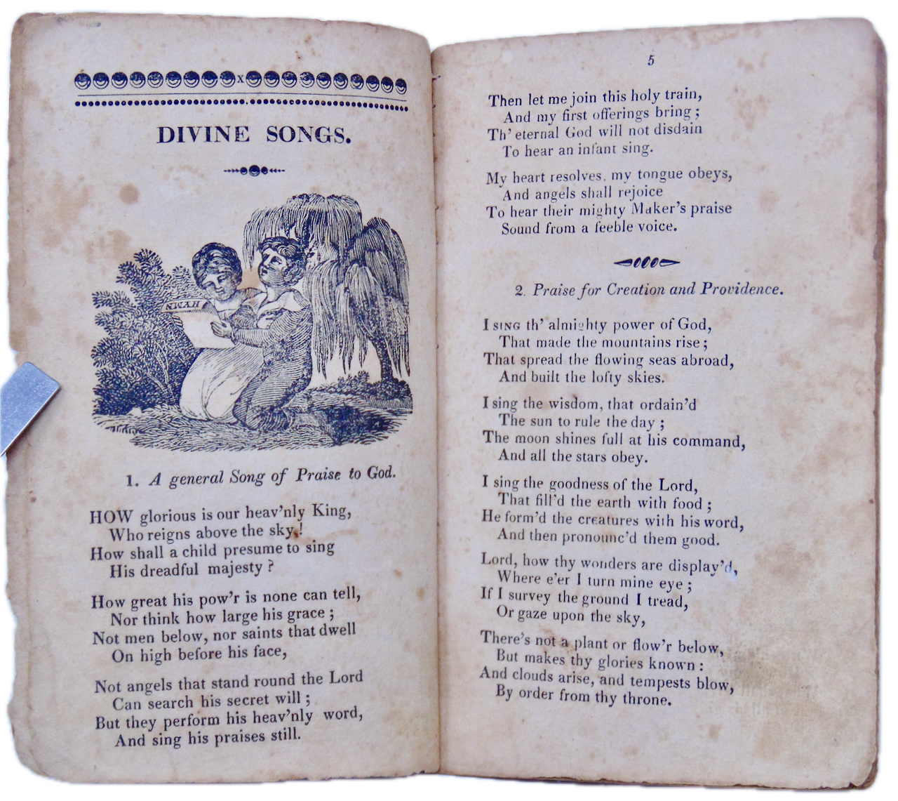 Watts, Isaac. Watts' Divine and Moral Songs, for the Use of Children. New-York: Printed and Sold by Mahlon Day, 1828. [5962]