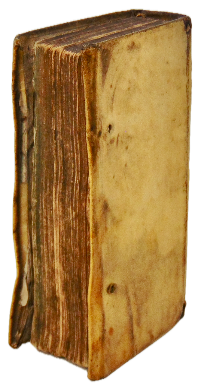 Full vellum, printed title & paper label to spine, lacks the tie closures. 10.6 x 5 cm (4 1/8 x 2 1/8 inches), end papers with neat notations, round institutional emboss stamp on the tp & one leaf. 460, [16]. 460 pages of text with 16 unnumbered pages of Index. Collated and complete, text in good or better condition. Very good. Hardcover.