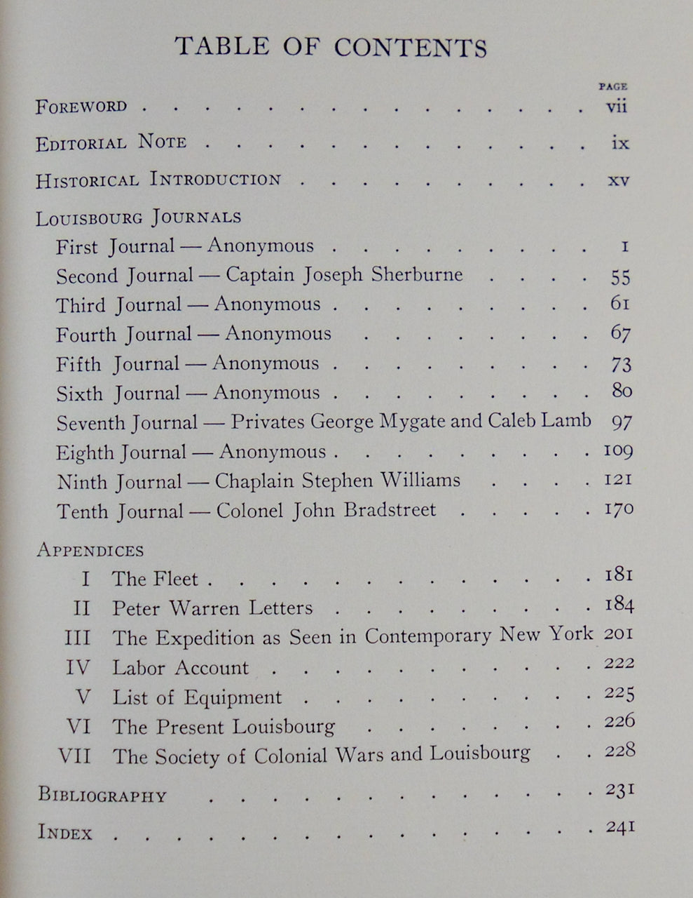 "Few events in the history of the British Colonies in North America have aroused more interest among the members of the Society of Colonial Wars than the Capture of Louisbourg in 1745. Naturally the most important military achievement of the American Colonies before the Revolution it has been felt most appropriate that is should be honored and remembered by the Society." - Editorial Note.