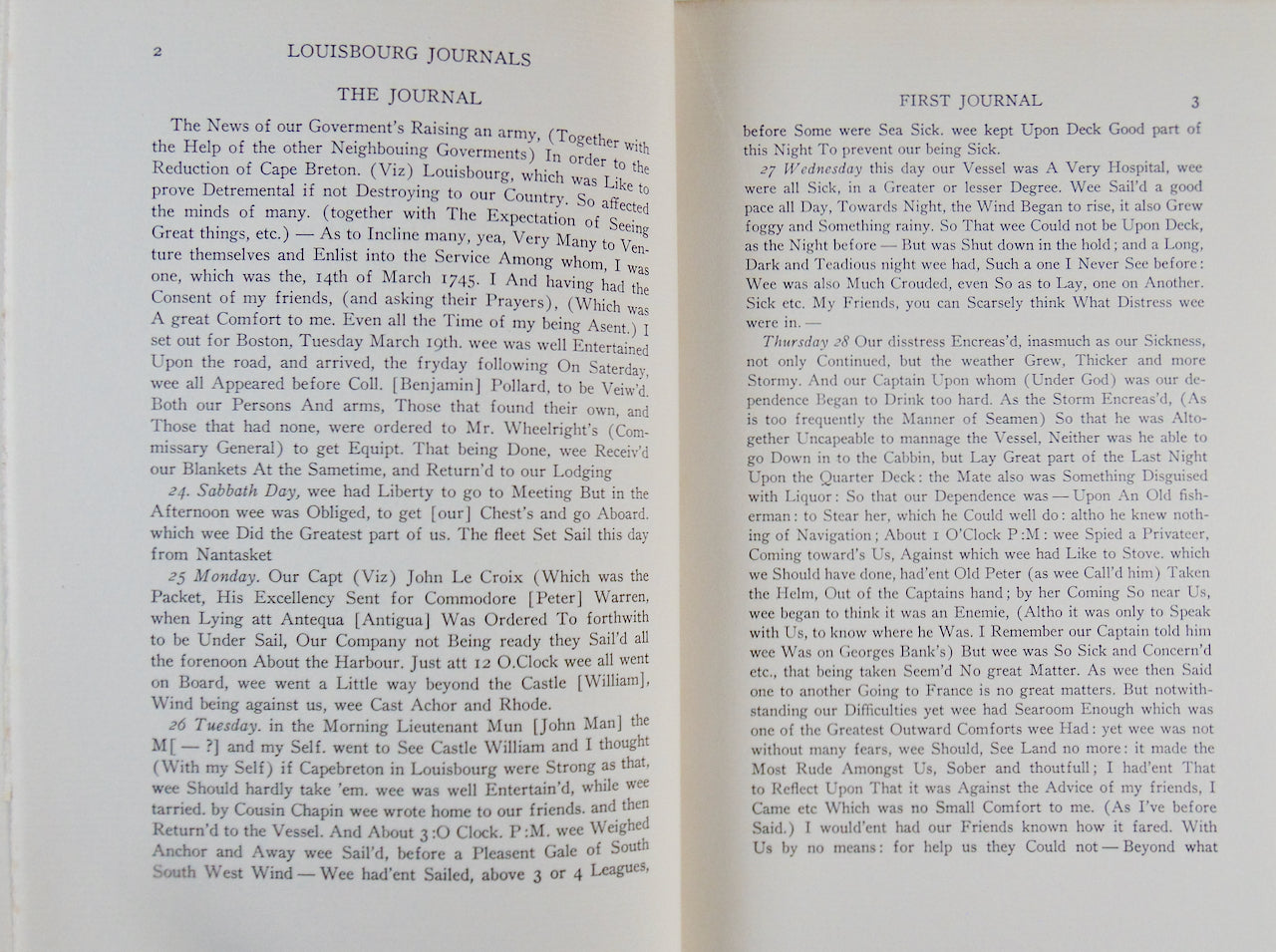 de Forest, Louis Effingham [editor]. Louisbourg Journals, 1745. New York: Compiled for and Published by The Society of Colonial Wars in the State of New York, through its Committee on Historical Documents, 1932. [11835]