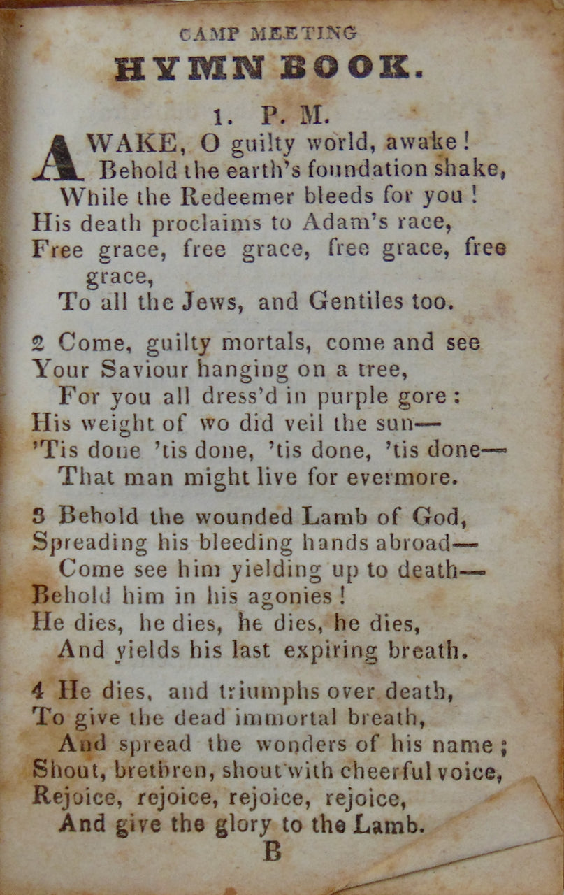 The Camp Meeting Hymn Book: containing the most approved Hymns & Spiritual Songs, used by the Methodist Connexion in the United States. Seneca Falls: Printed by Wm. Child, for S. Shaw, 1831. [11807]