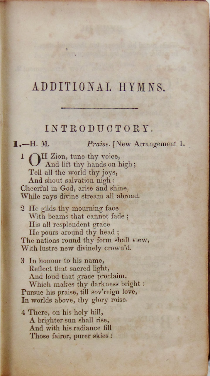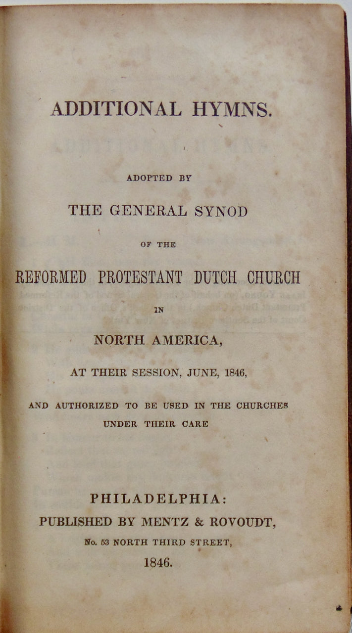 Additional Hymns, adopted by the General Synod of the Reformed Dutch Church, in North America, at their Session, June, 1846, and authorized to be used in the Churches under their care. Philadelphia: Published by Mentz & Rovoudt, 1846. [11845]