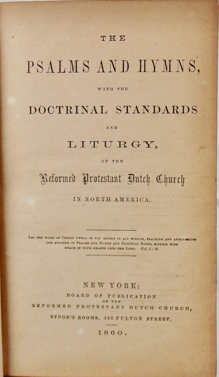 The Psalms and Hymns, with the Doctrinal Standards and Liturgy, of the Reformed Protestant Dutch Church in North America. New York: Board of Publication of the Reformed Protestant Dutch Church, 1860. Third Revised Edition. [11837]