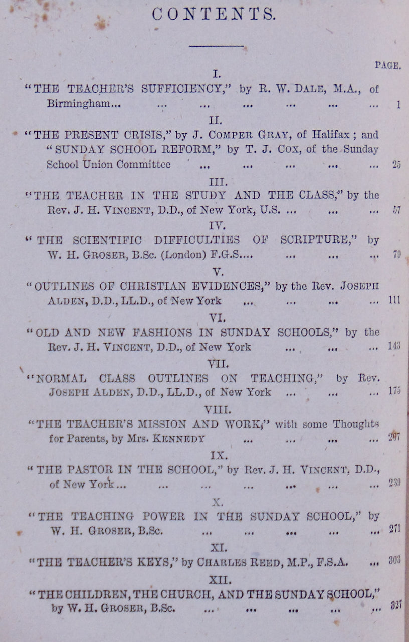 Dale, R. W.; Vincent, J. H.; Alden, Joseph; et al. The Teacher's Cabinet, containing Practical Papers on General Sunday School Topics. Contributed by various Authors (First & Second Series). London: Sunday School Union, 1873-1874. First Editions. [11820]