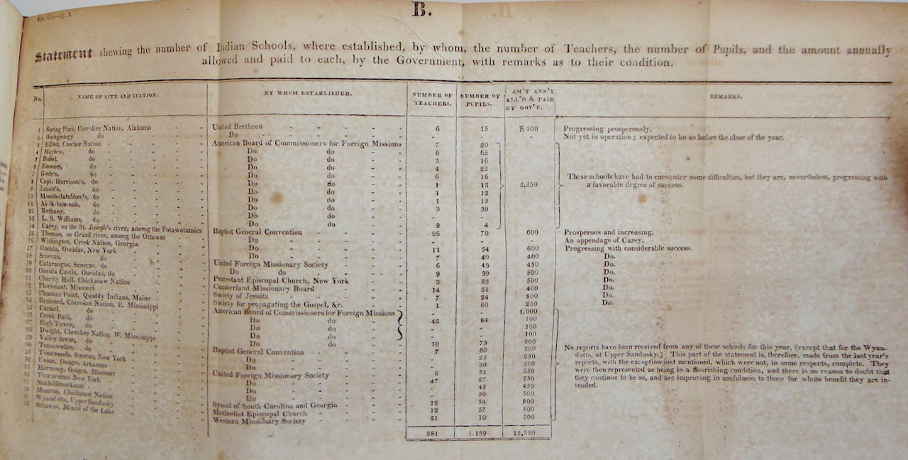 Intercourse with the Indians (10 pp. with large folding chart of Indian Schools)