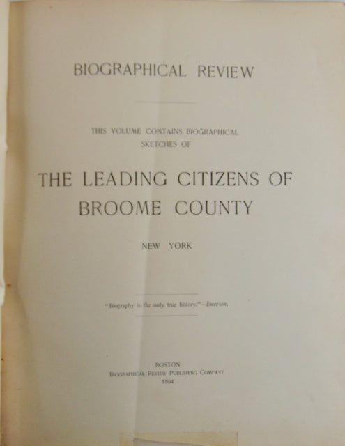 Biographical Review : This Volume Contains Biographical Sketches of the Leading Citizens of Broome County, New York. Boston: Biographical Review Publishing Company, 1894. [11645]