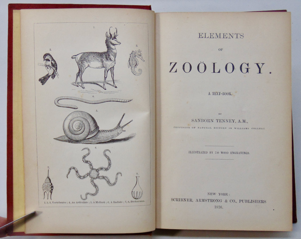 Tenney, Sanborn. Elements of Zoology : A Text-Book. Illustrated by 750 Wood Engravings. New York: Scribner, Armstron & Co., 1876. [11753]
