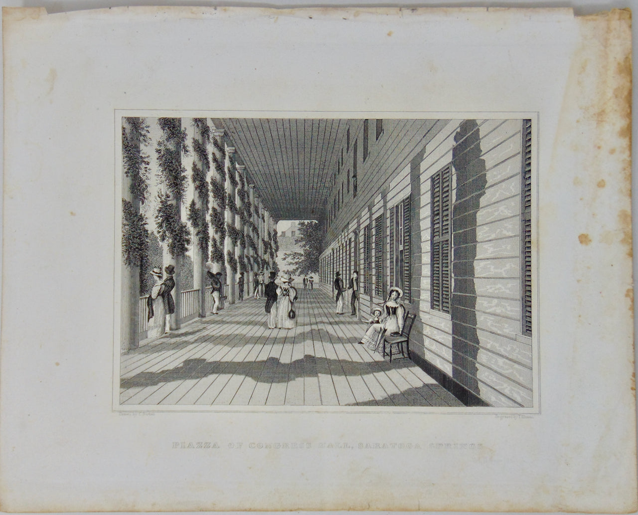 [ENGRAVING] Piazza of Congress Hall, Saratoga Springs. NY 1846