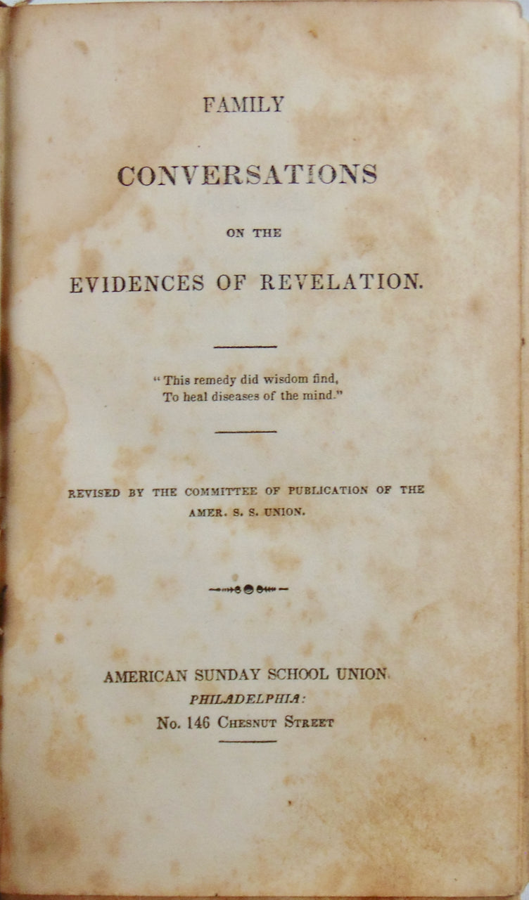 Family Conversations on the Evidences of Revelation. Philadelphia: American Sunday School Union, ca 1840. [11860]