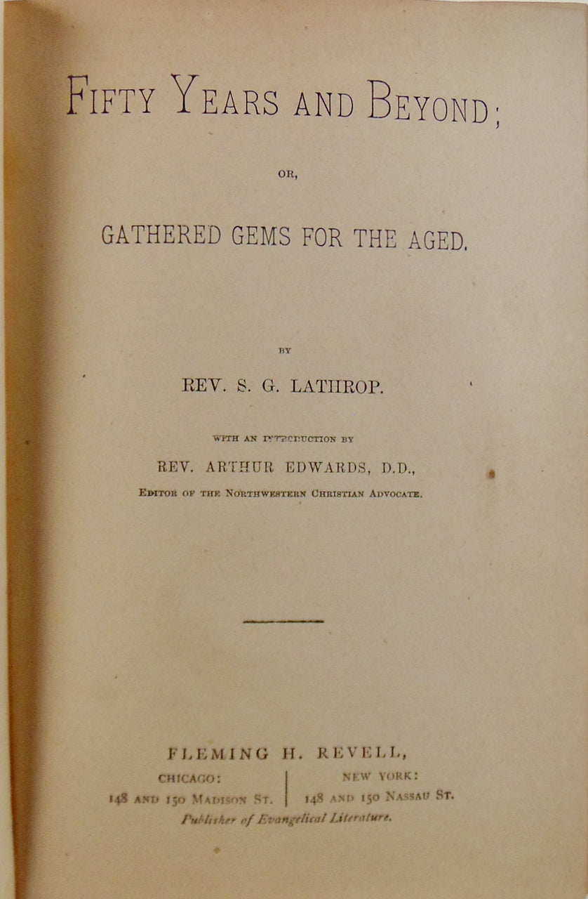 Lathrop, Rev. S. G. Fifty Years and Beyond; or, Gathered Gems for the Aged; With an Introduction by Rev. Arthur Edwards, D.D., Editor of the Northwest Christian Advocate. Chicago & New York: Fleming H. Revell Company, 1881. [11847]