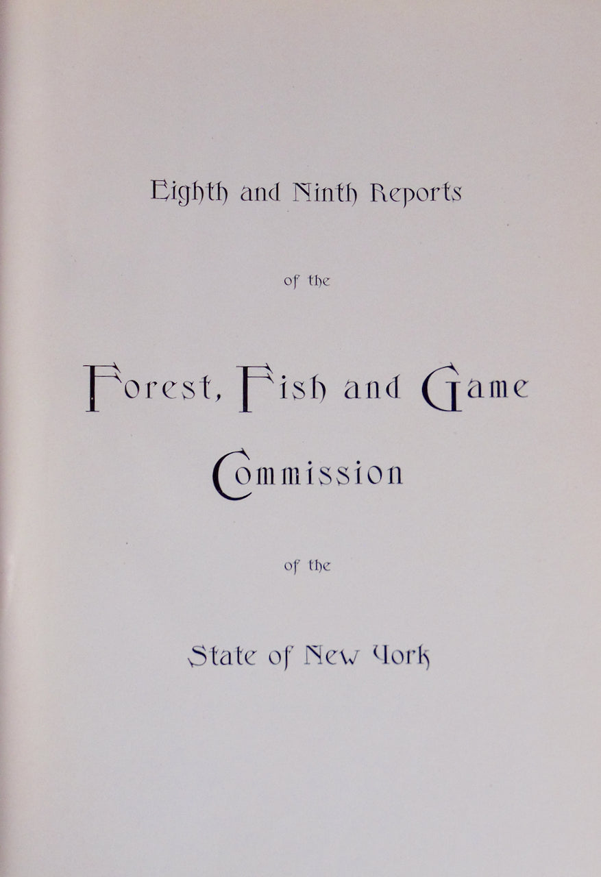 Eighth and Ninth Reports of the Forest, Fish and Game Commission of the State of New York (1902 & 1903). Albany, NY: James B. Lyon, State Printer, 1904. First Edition. [11760]