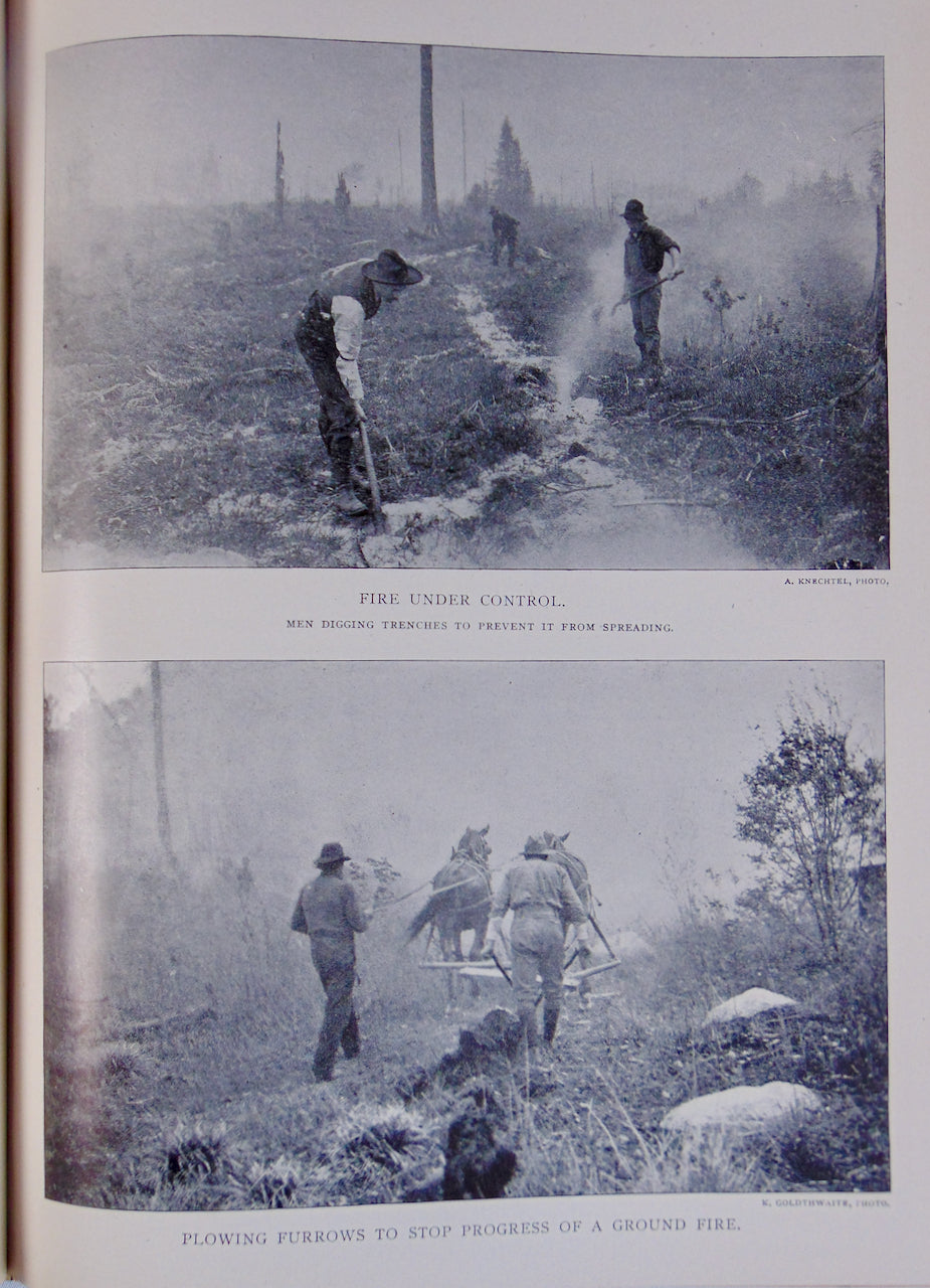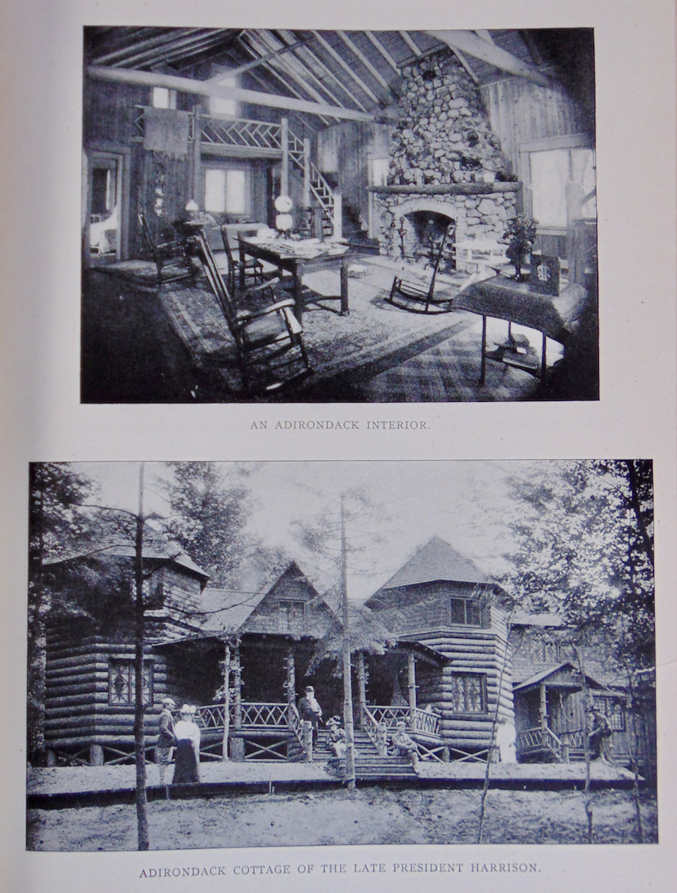A valuable resource of Adirondack history and lore, with many photographs and color plates. The b/w photos include scenes of forestry, forest fire-fighting, fishing guides, Adirondack camps, etc.