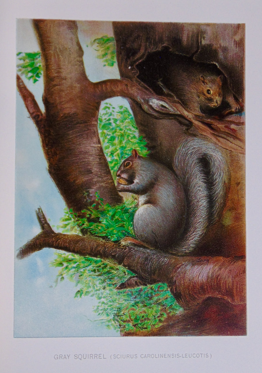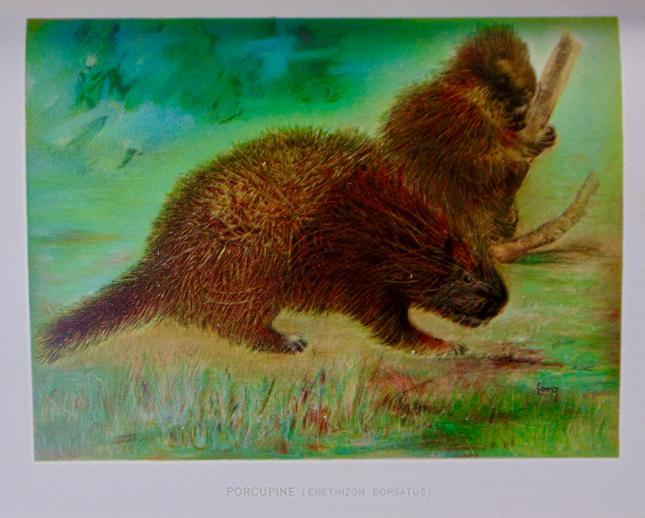 We counted 16 bird plates by Louis Agassiz Fuertes, 9 fish plates by Sherman Foote Denton, and the following animal plates by Lang: Porcupine, Red Squirrel, Gray Squirrel, and Chipmunk.