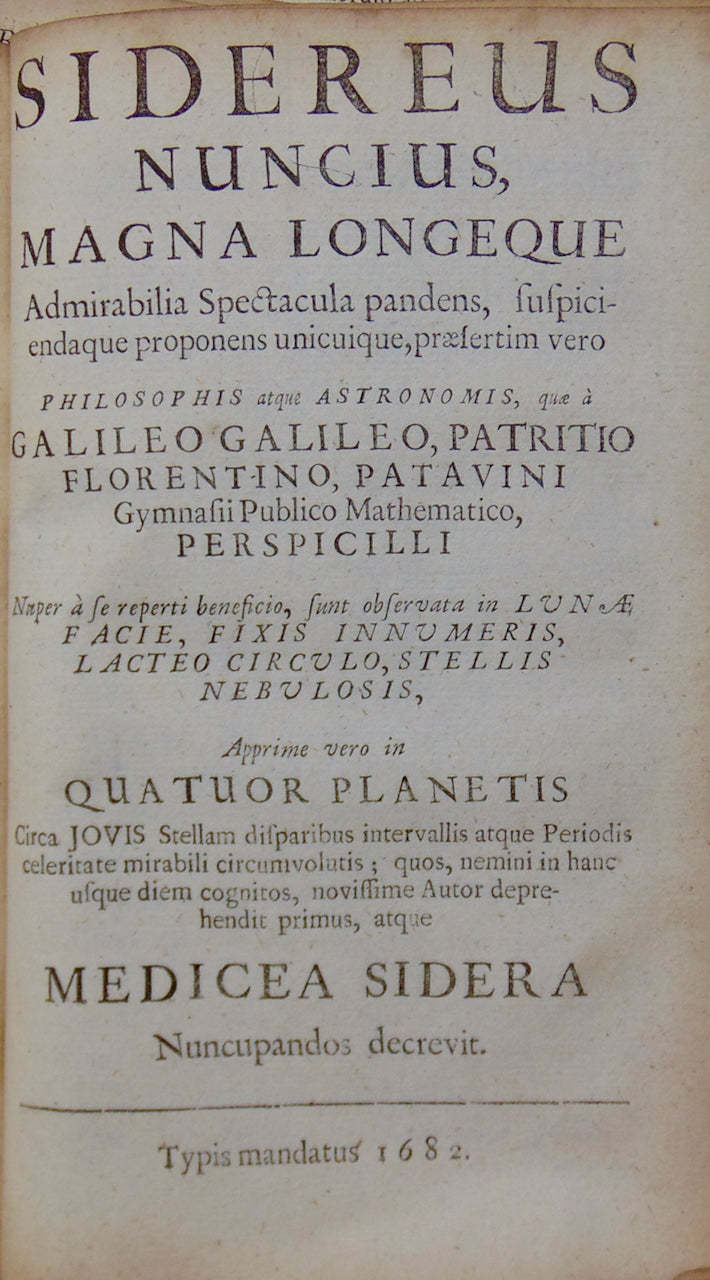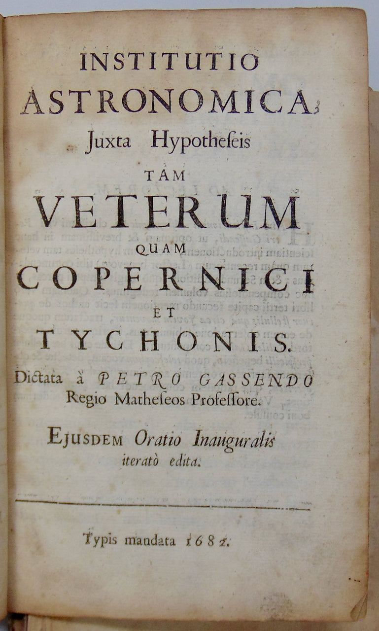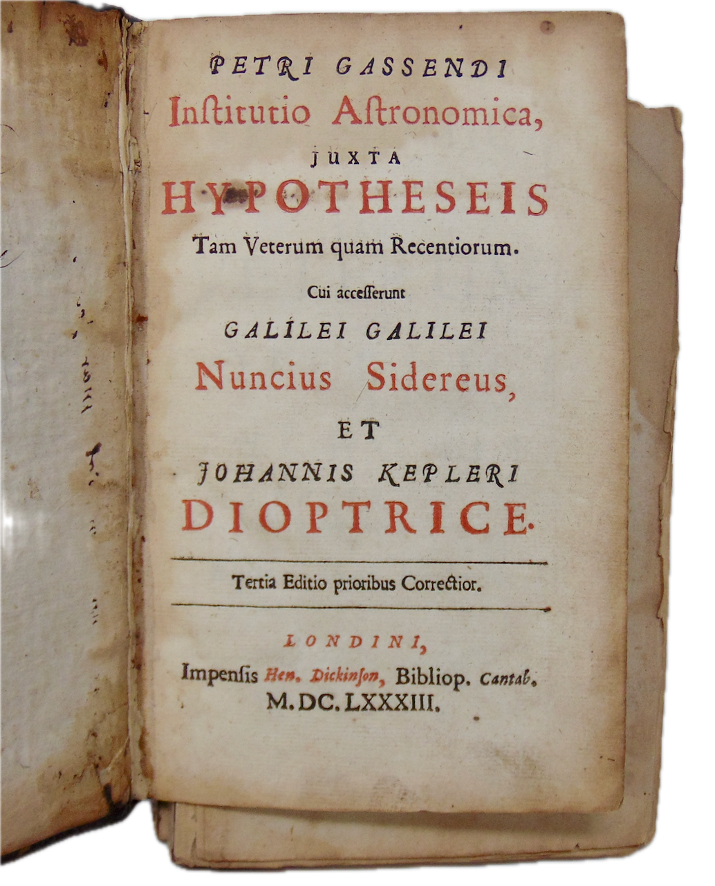 Gassendi, Pierre; Kepler, Johannes; Galilei, Galileo. Petri Gassendi Institutio Astronomica, juxta Hypotheseis Tam Veterum quam Recentiorum. Cui accesserunt Galilei Galielei Nuncius Sidereus, et Johannis Kepleri Dioptrice. Londini [London]: Hen. Dickinson, 1683. Tertia Editio prioribus Correctior [Third Edition, corrected]. [11700]