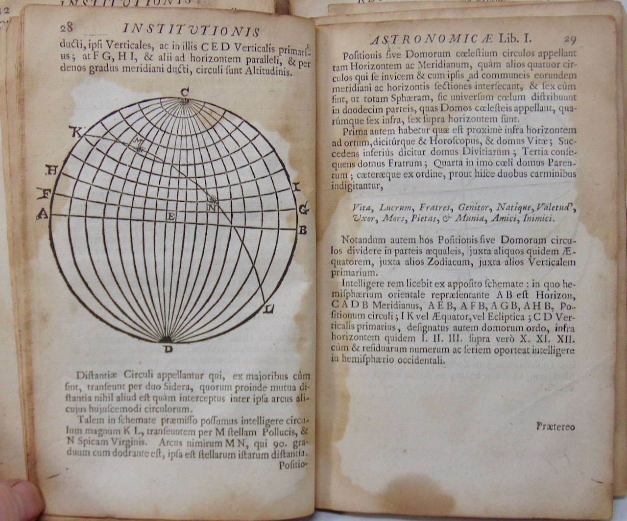 The third edition of this early astronomical work with many text illustrations explaining the theories. There is only one copy of this 1683 London edition online, complete and in very good condition, at $4500. Unfortunately, our copy is defective, lacking 4 plates and 15 pages of text total, the whole in several pieces and separated from the binding. Priced accordingly.
