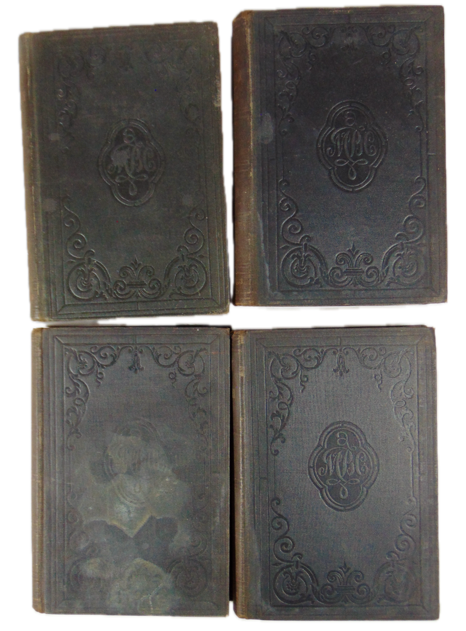 Four matching volumes in publisher's black cloth, each 7 1/2 x 5 1/4 inches, about 500 clean pages in each book, bindings are clean, tight, with good joints. Vol. I. is ex library with white ink call numbers on the spine, ink stamps & card pocket within. Vols.II-IV are NOT ex library and come from the same purchase. Vol. III. has an old stain on the front cover and the first section of pages are wavy. Very good. Hardcover.