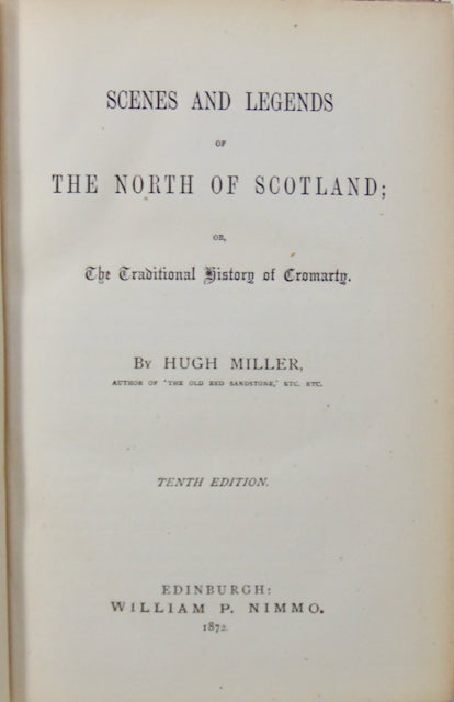 Miller, Hugh. Scenes and Legends of The North of Scotland; or, The Traditional History of Cromarty. Edinburgh: William P. Nimmo, 1872. Tenth Edition. [11572]