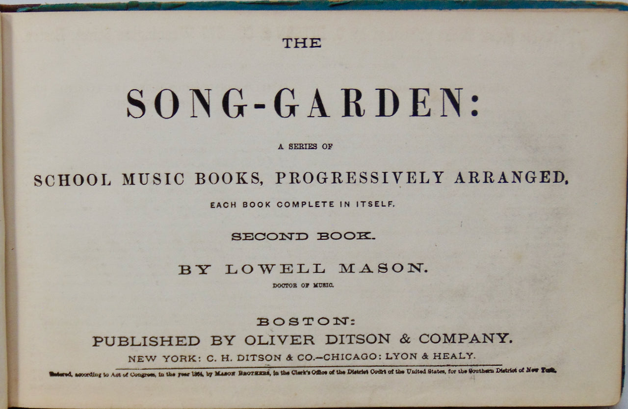 Mason, Lowell. The Song-Garden: A Series of School Music Books, Progressively Arranged. Each Book Complete in Itself. Second Book. Boston: Oliver Ditson & Company, 1864. [11762]