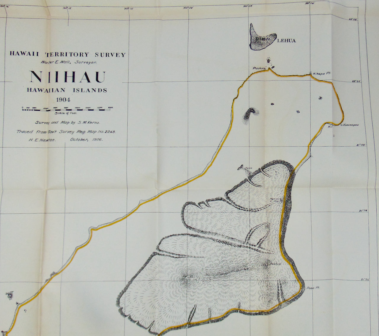 Wall, Walter E.; Kerns, S. M. [MAP] Niihau, Hawaiian Islands; Hawaii Territory Survey 1904. Washington: Government Printing Office, 1906. First Edition. [11889]