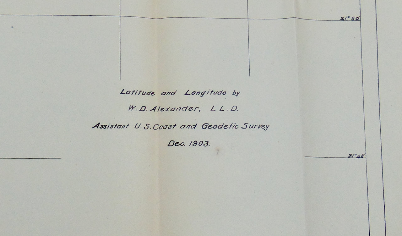 A large lithographed map outlined in color, about 27 1/2 x 21 inches. Some toning to the folds, a couple of tiny holes in the same. The map is dated 1904 and was included in the Hawaiian governor's report for 1906, published in 1907. Good. Map.