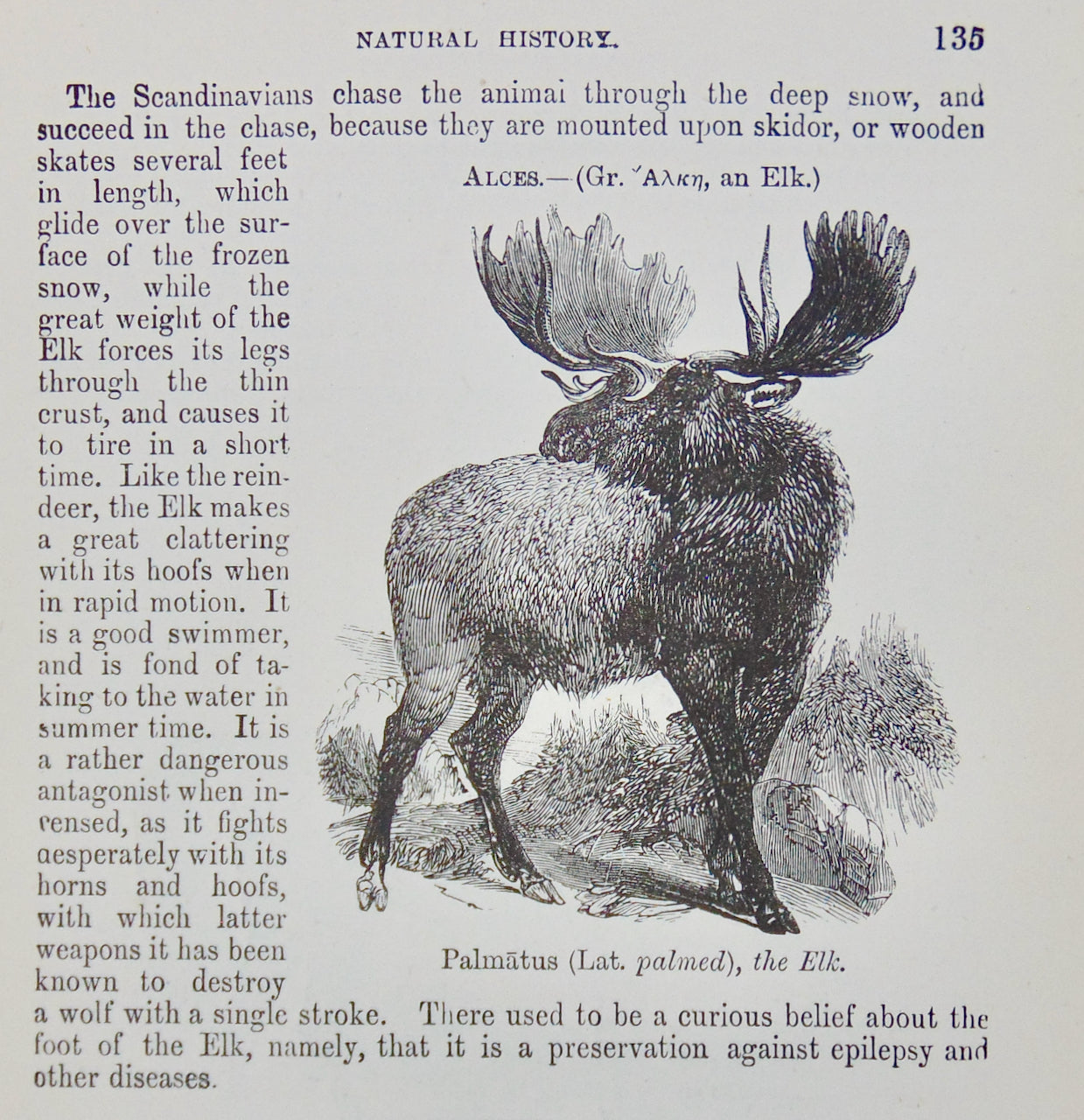 Green cloth decorated in gilt, black, and olive, with an American Bison vignette on front; corner tips and spine ends frayed, 8 x 5 1/2 inches. Frontispiece chromolithograph of a bighorn sheep; another of a group of hummingbirds. The rest of the illustrations are b/w wood engravings. Good. Hardcover.