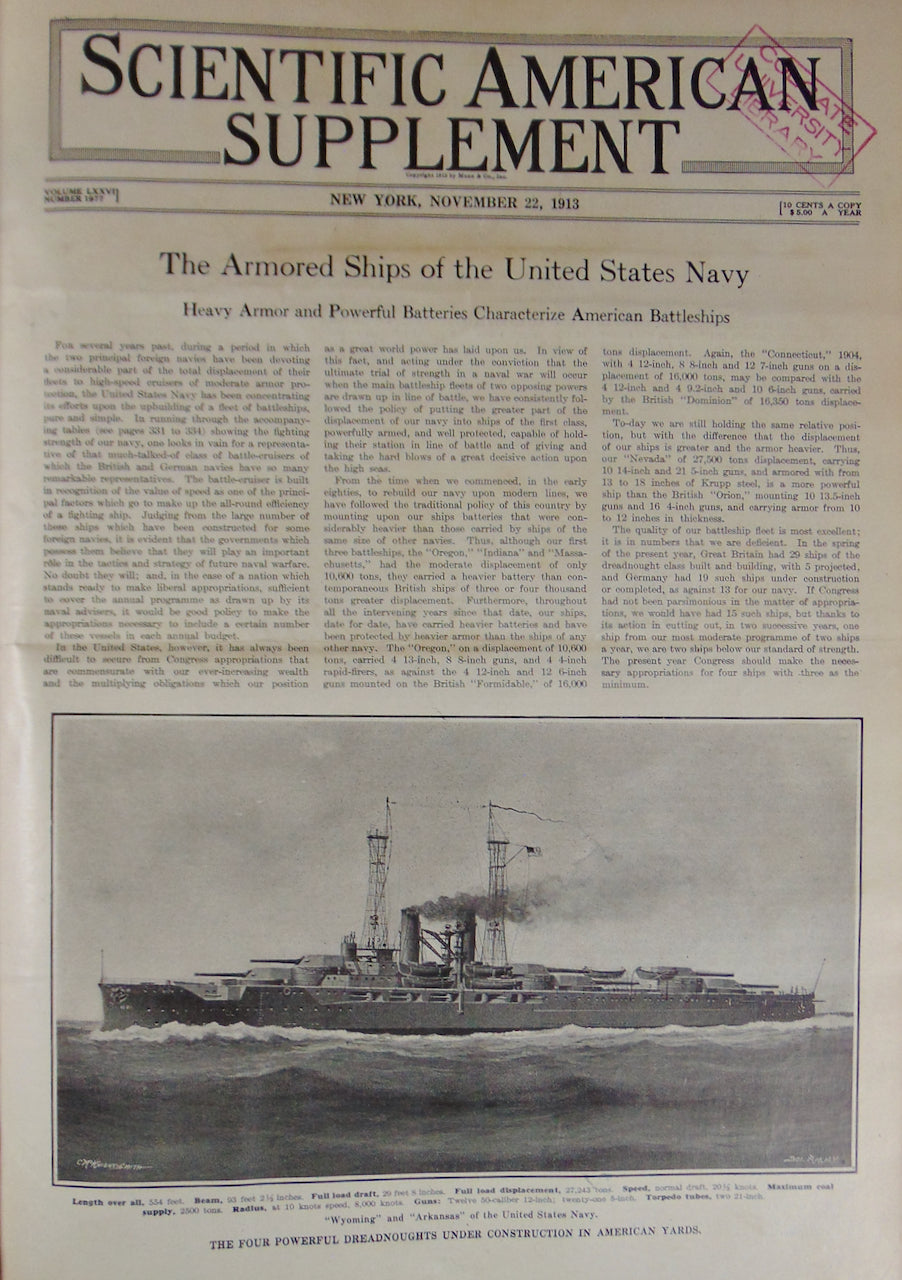 July 5, 1913 to December 27, 1913. Hundreds of illustrated scientific articles from the early days of the automobile, the airplane, ships, machinery, electricity, the telephone, &c.