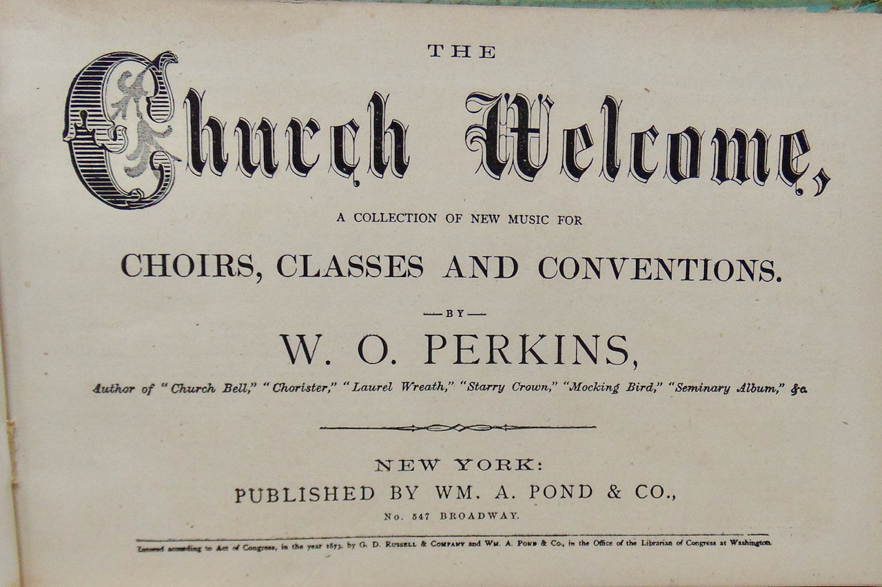 Perkins, W. O. The Church Welcome, A Collection of New Music for Choirs, Classes, and Conventions. New York: Wm. A. Pond & Co., 1873. First Edition. [11480]