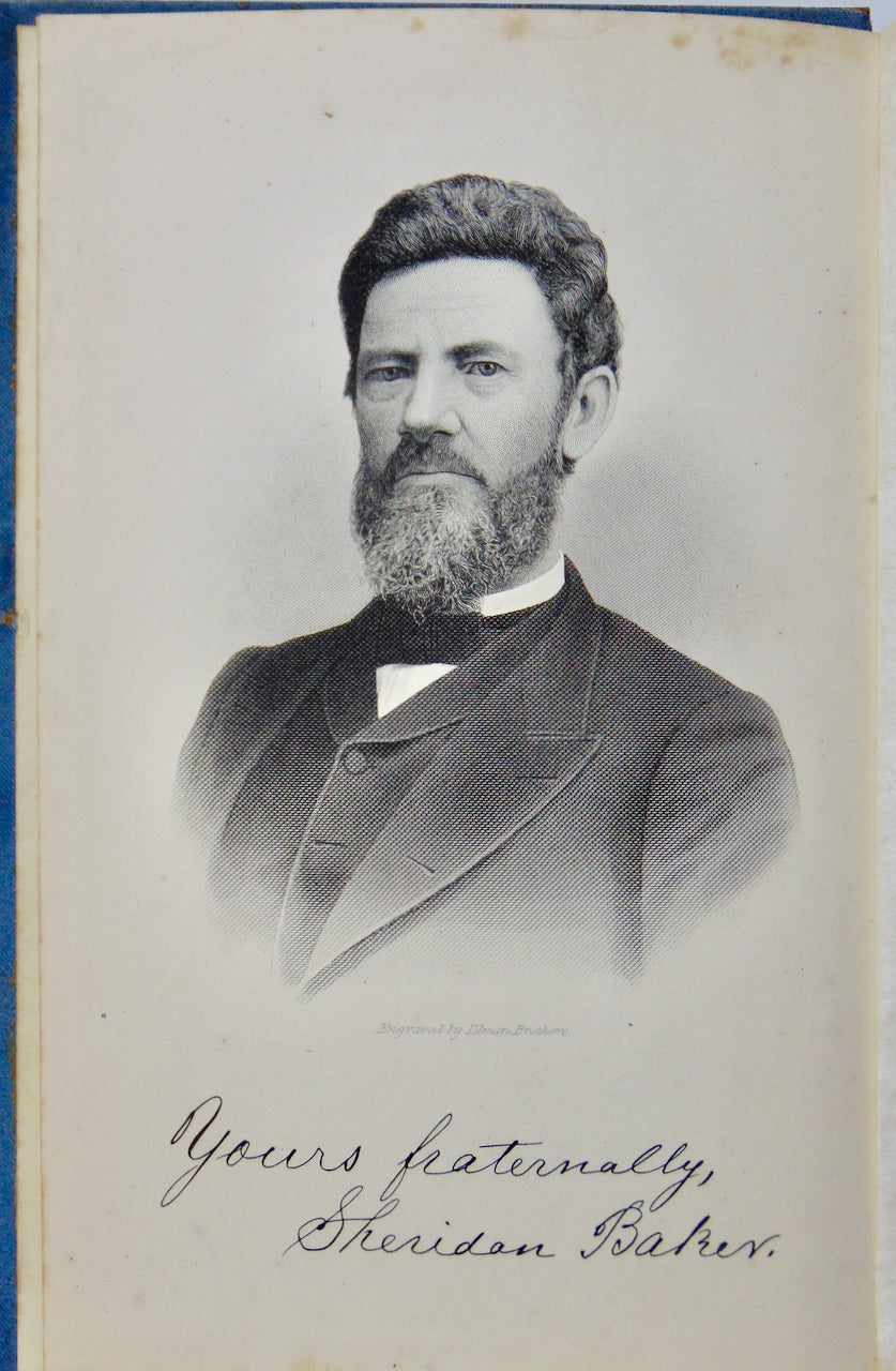 Rev. Sheridan Baker, D.D. (1824-1890), b. near Cadiz, Ohio; d. Coshocton, Ohio. Baker was a "Methodist Episcopal Church pastor, educator, evangelist, entrepreneur, and author." He was a Presbyterian preparing for the ministry "when he was converted on 2 February 1847, during revival services at a local Methodist church." He became a pastor and an evangelist with the Methodists as a member of the Pittsburgh Conference. In 1864 he began a successful mercantile business, but in 1874 returned to the ministry after claiming the experience entire sanctification after reading J. A. Wood's book, Perfect Love. "One of the most distinctive characteristics of Baker's teaching of holiness doctrine was his insistence on 'progressive holiness.' In his view, the experience of entire sanctification was not the end of one's spiritual quest but the beginning of a live or repeated 'anointings' of the Holy Spirit." - quotations from William Kostlevy, The A to Z of the Holiness Movement.