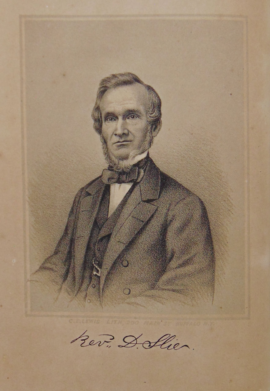Rev. David Slie (1800-1883), itinerant revivalist, at one time a member of the Black River Association of western New York. In 1835 the Presbytery of Angelica chastised him for acting independently and for loosening the strictness of Presbyterian doctrine. We find references with Rev. Slie working with both Congregational and Presbyterian churches. In 1843 he was the secretary for a Free Congregational society that had separated from the Presbyterian Church in Sodus, New York, over the issue of slavery.