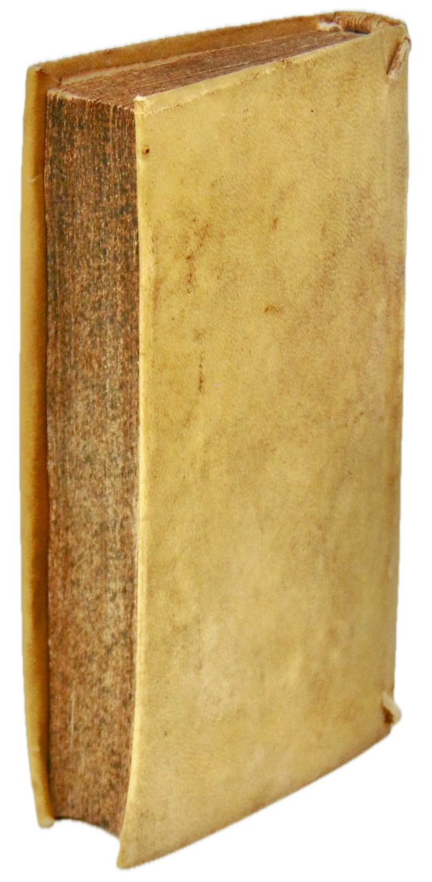 Full vellum, tight, end paper hinges partly open front and back, 13.5 x 7.3 cm (5 1/4 x 2 7/8 inches). Woodcut frontispiece & 26 woodcuts in the text. [2], x., 396 clean pp., text very good, last few leaves unopened at top. Very good. Hardcover.