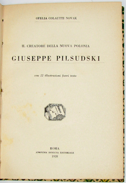 Novak, Ofelia Colautti. Il Creatore della nuova Polonia, Giuseppe Pilsudski, con 22 illustrazioni fuori testo. Roma: Anonima Romana, 1928. 1st. [854]