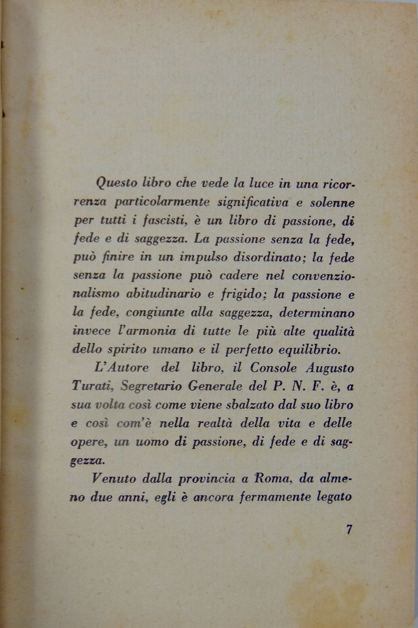 Turati, Augusto. Ragioni Ideali di Vita Fascista: Con prefazione di Benito Mussolini. Roma: Berlutti, (1926). [8043]